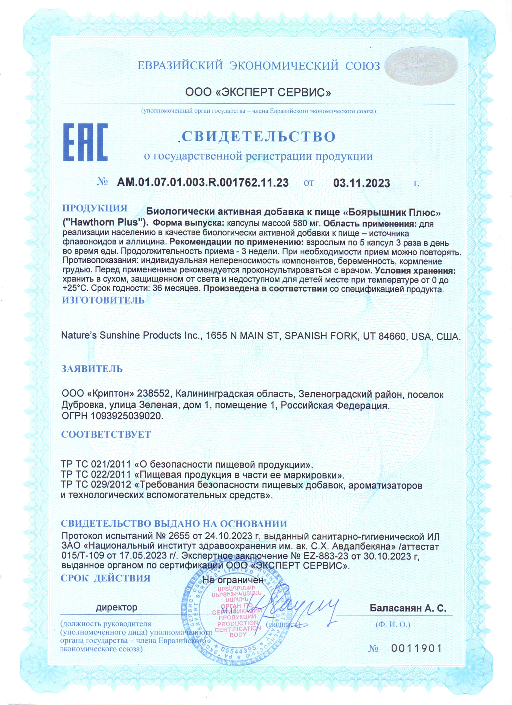 БАД к пище Боярышник Плюс является источником флавоноидов и аллицина.