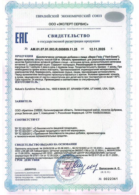БАД «Вери-Гон» является дополнительным источником биофлавоноидов, витамина С и рутина.